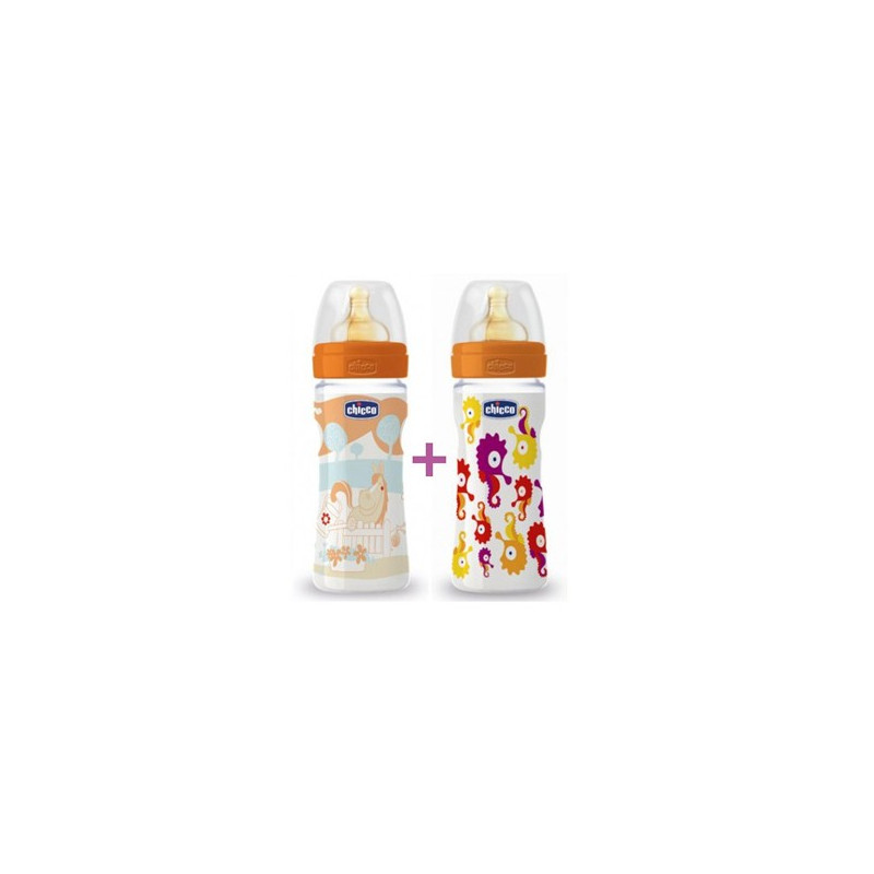Chicco Bipack Biberón Polipropileno Boca Ancha Caucho son dos biberones de boca ancha, de flujo regulable y con válvula anticólico.