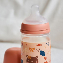 Biberón ideal para alimentar y cuidar al bebé con una alimentación más natural gracias al diseño de su tetina que respetar el desarrollo de la cavidad oral del bebé