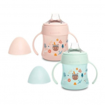 Biberón con asas para bebés a partir de los 4 meses, que ayudar al pequeño en el proceso de aprender a beber solito y pasar del biberón al vaso.