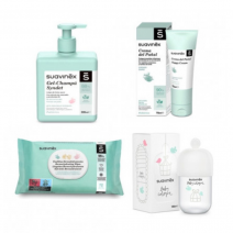 Suavinex canastilla cosmética Azul, es una canastilla de color azul con forro de tela equipada con todo lo necesario para el cuidado de los bebés.