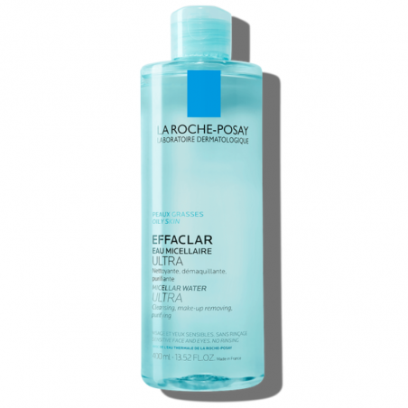 La Roche Posay Effaclar Agua Micelar Ultra es un producto de cuidado facial que se presenta en un envase de 400 ml. Se trata de un agua micelar especialmente formulada para pieles grasas y sensibles, que combina una limpieza efectiva con una alta tolerancia dermatológica.