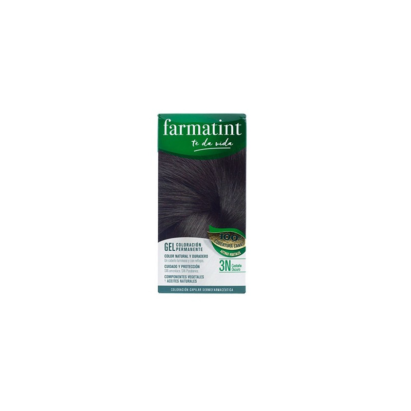 Farmatint 3n castaño oscuro con una suave formulación sin amoníaco y a los ingredientes vegetales activos que contiene, cubre perfectamente las canas a la vez que cuida el cabello.