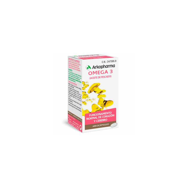 Arkokaps omega 3 aceite de pescado 50 perlas es un complemento alimenticio a base de aceite de pescado rico en EPA y DHA, que contribuye al funcionamiento normal del corazón y del cerebro.