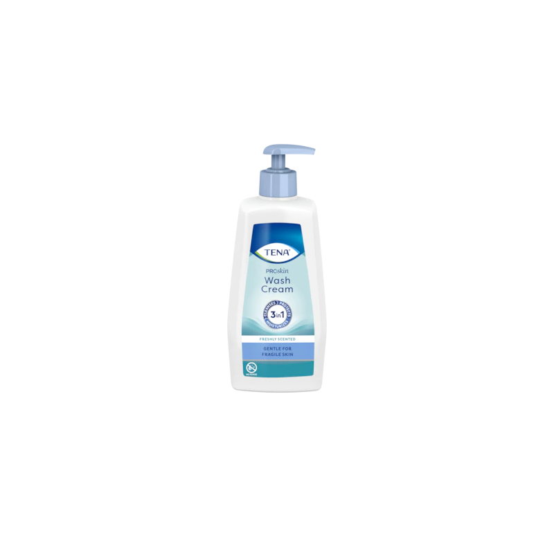 Crema que limpia, protege e hidrata la piel delicada o frágil de las personas mayores. TENA WASH CREAM es una crema suave que no altera el pH natural de la piel evitando irritaciones y posee un agradable olor.