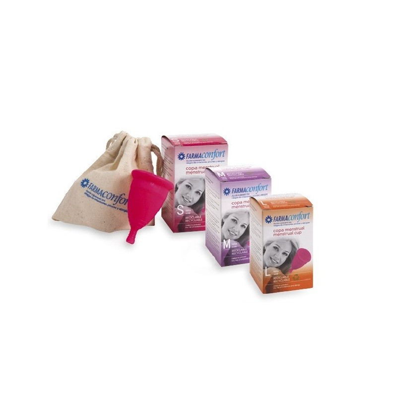 Copa menstrual farmaconfort talla l producto sanitario ecológico para el periodo menstrual, aguanta hasta 12 horas sin cambiarse.