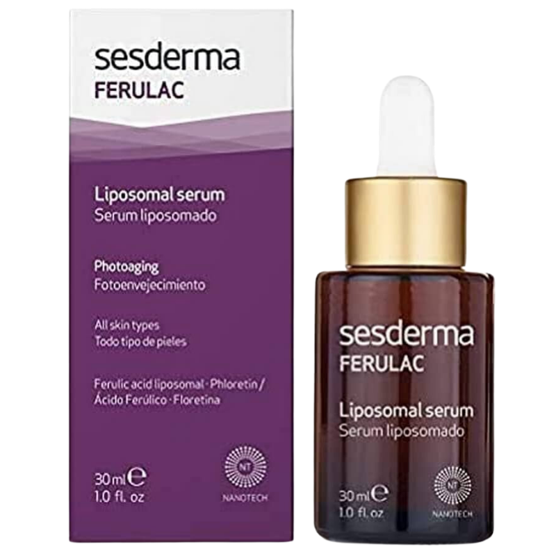 Sesderma ferulac liposomal serum 30ml, es un serum concentrado antioxidante que atenúa los signos del fotoenvejecimiento de la piel.