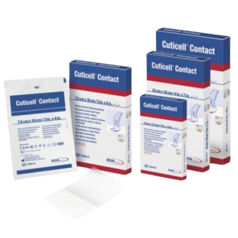 Apósito cuticell contact 7,5 cm x 10 cm caja de 5 uds Apósito de silicona, suave y no adherente para cubrir heridas exudativas. Se puede retirar sin causar traumatismos en la herida ni en la piel circundante.