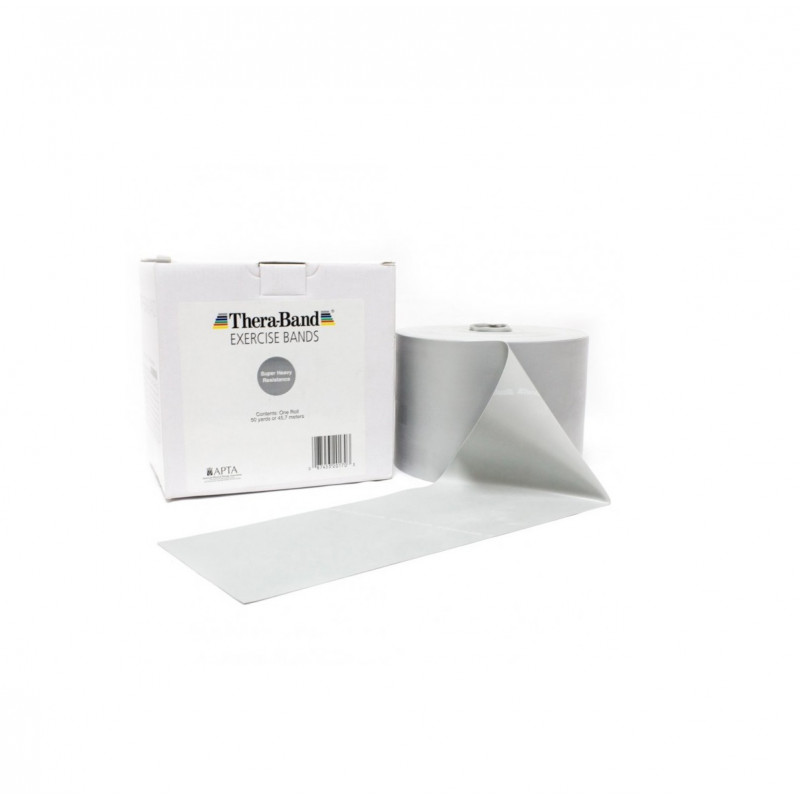Rollo thera-band plata 45m ref:tbe45708 1 ud cinta elástica de látex para realizar terapias de rehabilitación y fitness en centros especializados o en el hogar para desarrollar y fortalecer los músculos y aumentar la resistencia al cansancio.