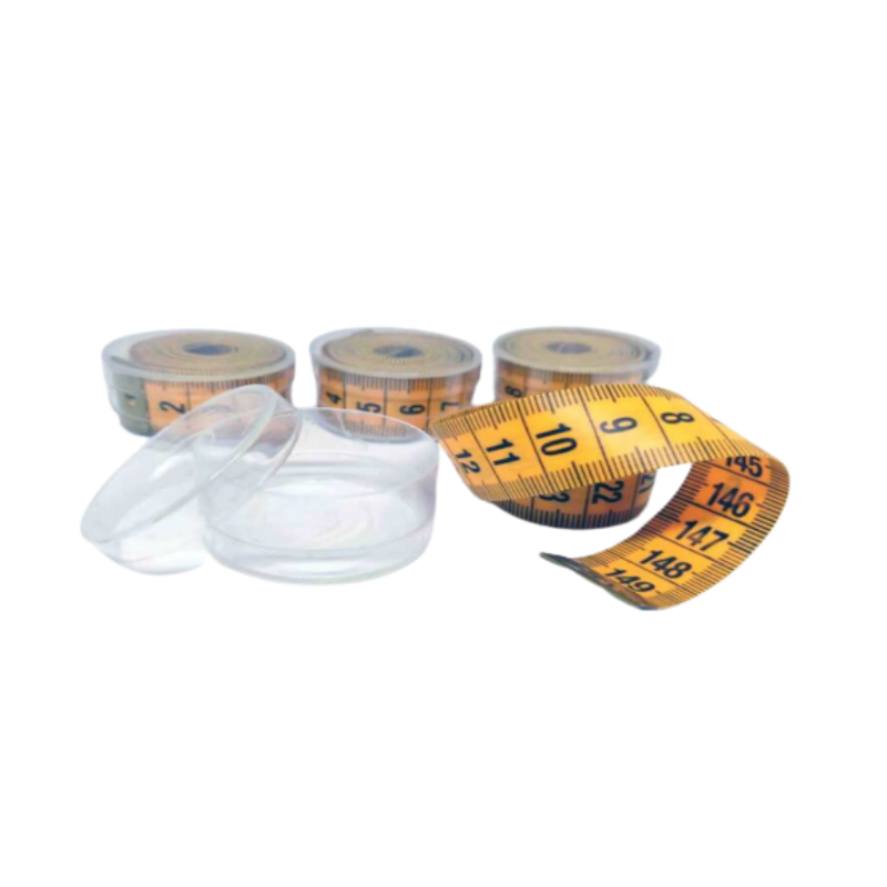 Cinta métrica para de vuelta automático por botón presión para medición de perímetros o partes del cuerpo.