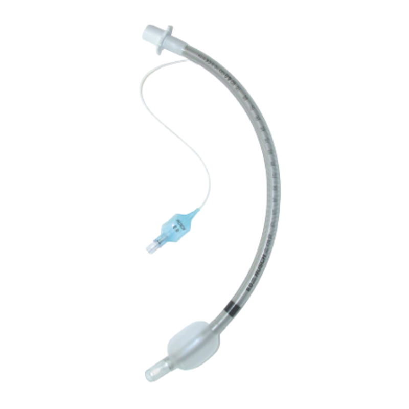 Tubo traqueal nasal-oral reforzado ruschflex curvado, fabricado en PVC termosesnsible.