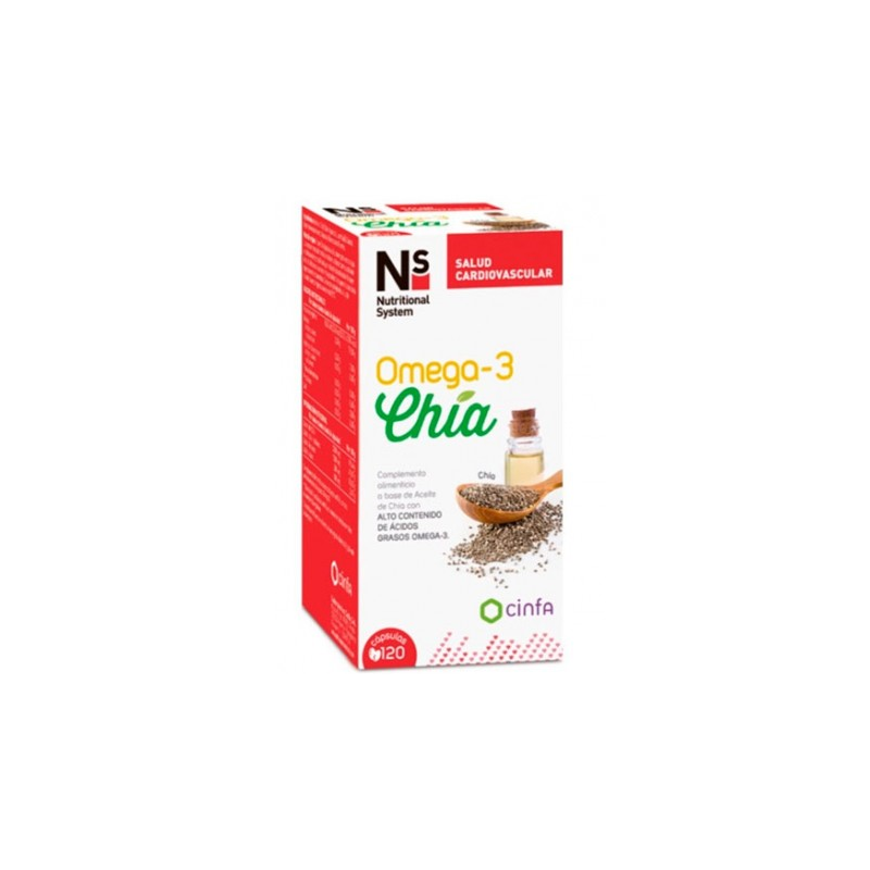 Ns omega3 chia 120 capsulas es un complemento alimenticio elaborado con aceite de semillas de Chía para recuperar energía y reforzar las defensas, ayudando a nuestro cuerpo a regenerar las células y obteniendo las vitaminas y otros componentes de este súper alimento.