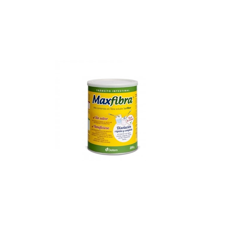 Deiters maxfibra 200 gr, fibra soluble ideal para toda la familia que ayuda a regular el tránsito intestinal y facilitar el proceso evacuación. Está elaborado con Sunfibre® goma guar parcialmente hidrolizada, totalmente soluble y con capacidad de hidratar las heces para facilitar su evacuación. Solo con añadirlo a los líquidos o semilíquidos se obtiene el beneficio de la fibra sin modificar el sabor de las bebidas o alimentos.