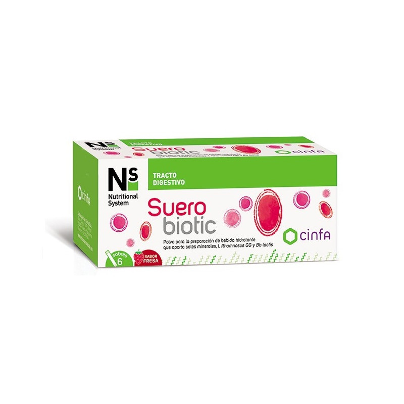 Ns suerobiotic 6 sobres es un suero en polvo que se disuelve en agua ayudando a la rehidratación en caso de gastroenteritis, deshidratación por golpes de calor y/o infecciones.