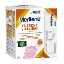 Meritene Fuerza y vitalidad Fresa 15 Sobres indicado para complementar la alimentación de personas con una dieta insuficiente por falta de apetito, por estados carenciales, deportistas, etc.