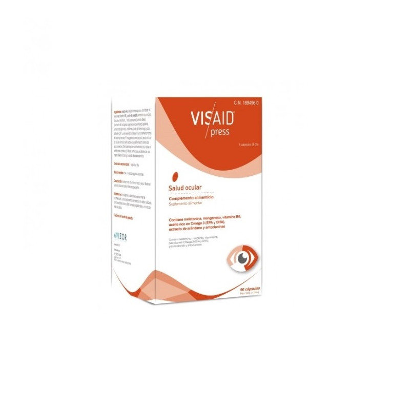 Visaid press 90 capsulas es un complemento alimenticio que disminuye el riesgo de sufrir DMAE, mejora la circulación sanguínea y la visión de los pacientes que sufren glaucoma.