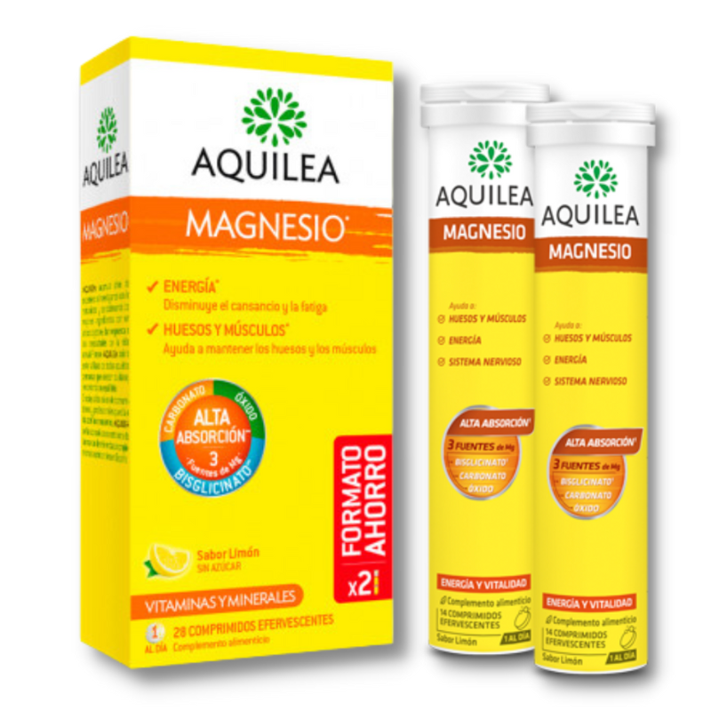 Duplo Aquilea magnesio 28 comprimidos efervescentes es un complemento alimenticio que aporta el magnesio que el organismo necesita para estar al 100%. ( 2 uds. de 14 comprimidos)