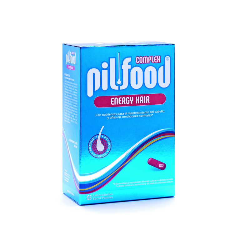 Pilfood complex energy 180 comprimidos, complemento alimenticio a base vitaminas y minerales que nutre el cabello estimulando su crecimiento y fortaleciéndolo, frenando la caída y el deterioro capilar.
