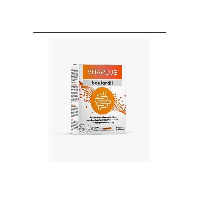Vitaplus boulardii bucodispersable 10 sticks Complemento alimenticio con propiedades simbióticas. Su formula combina 2 tipos de microorganismos, la levadura probiótica y las bacterias lácticas.
