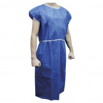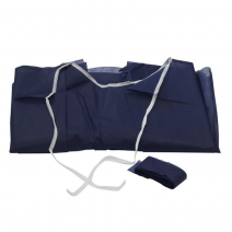 Bata para paciente y personal sanitario sin mangas: bata de protección azul marino de 50 gr no estéril con envase unitario. Opaca y ajustable mediante cintas al cuello y a la cintura de color blanco.