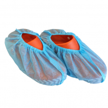 Calzas cubrezapatos desechables: en color azul, antideslizantes de 40 grs. Fabricado 100% en polipropileno, tejido suave, ligero, sedoso y transpirable. Muy resistente, cosido con hilo de poliéster blanco. Ajustable con goma elástica.