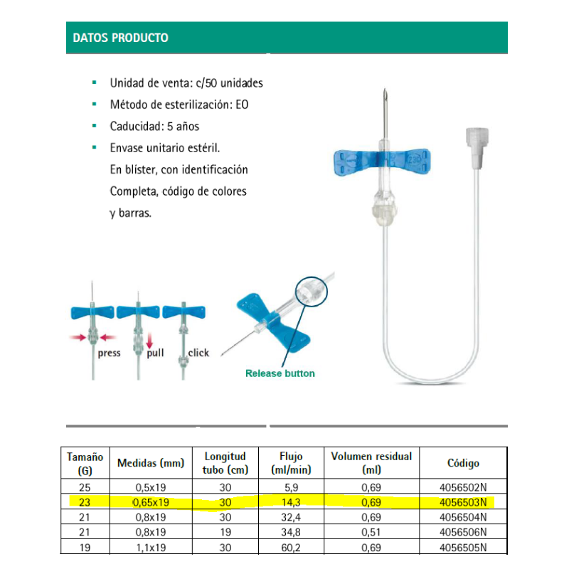 -Las alas suaves facilitan una fijación segura en la piel del paciente.