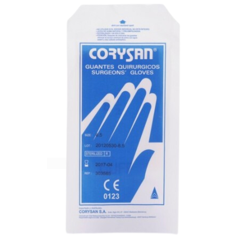 Guante apto para cirugía estéril y de látex Talla-8 marca Corysan 1 par, están diseñados para proteger y aislar al personal sanitario durante las intervenciones quirúrgicas y en todas aquellas tareas que requieran una manipulación en condiciones de esterilidad.