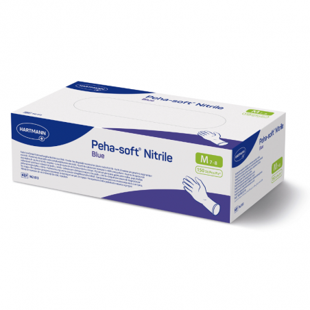 Guantes nitrilo Peha Soft Hartmann Talla M Caja 150 uds Azul referencia: 942013, los guantes de exploración son productos sanitarios desechables para la prevención de infecciones, transmisión de gérmenes y contaminación cruzada durante las intervenciones y procedimientos médicos.
